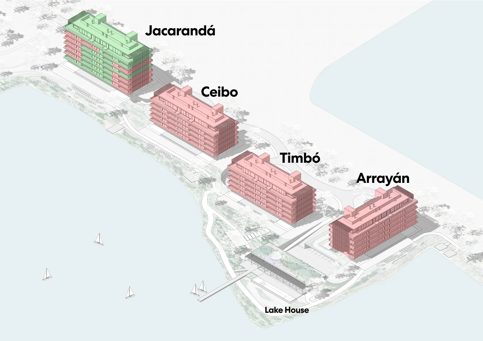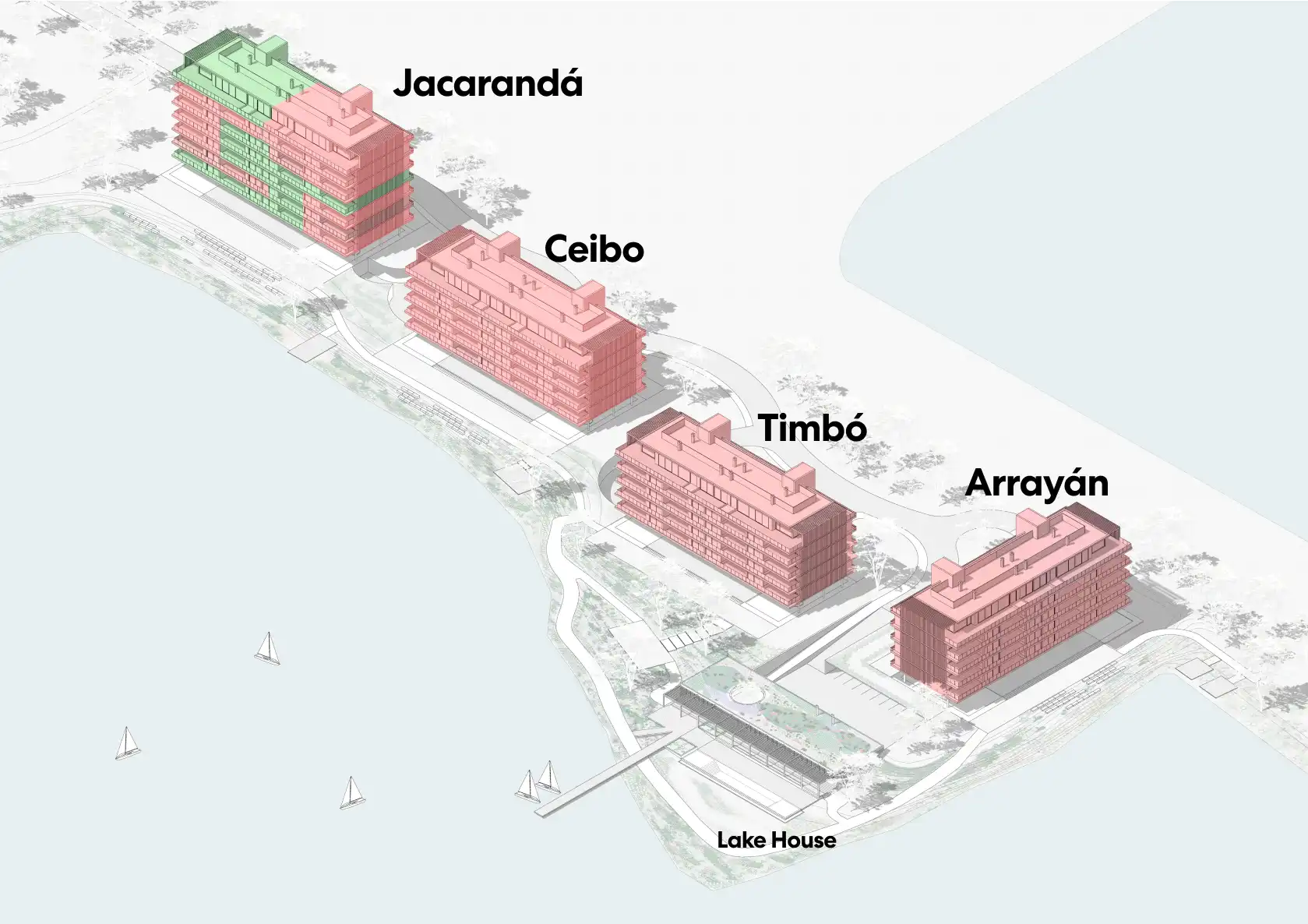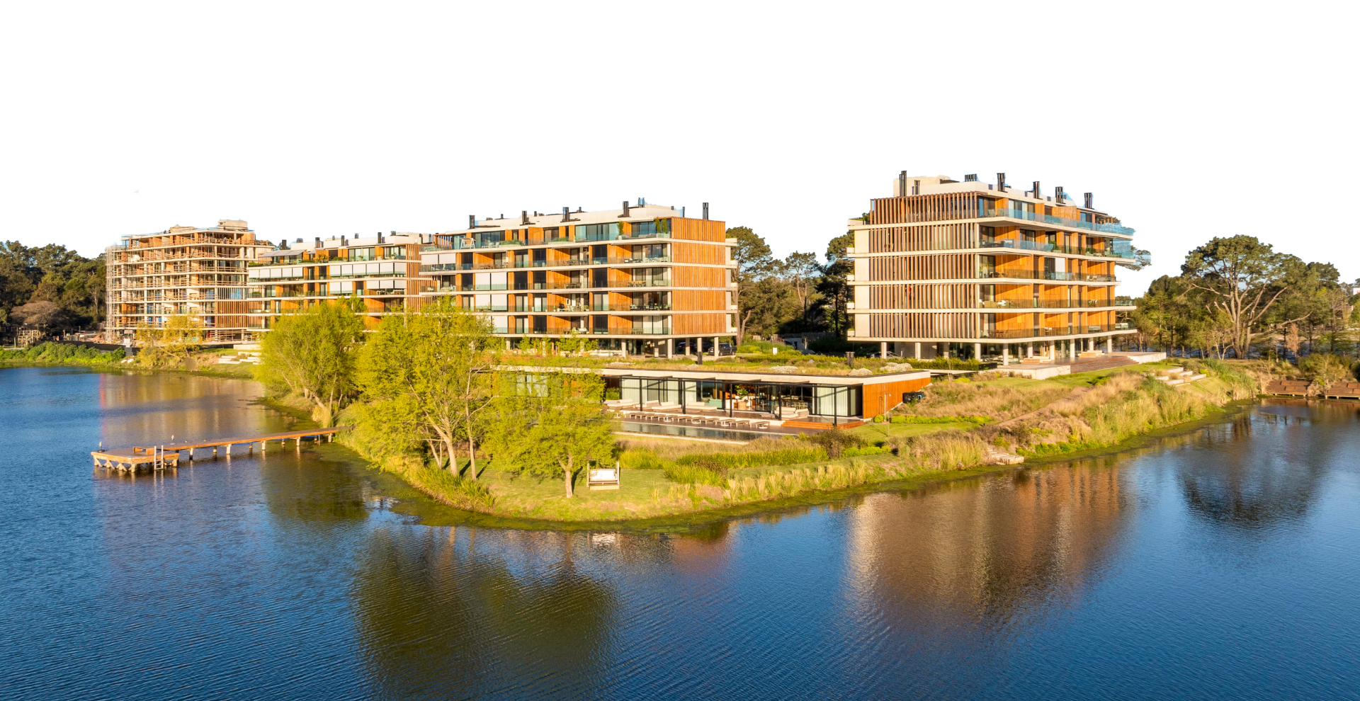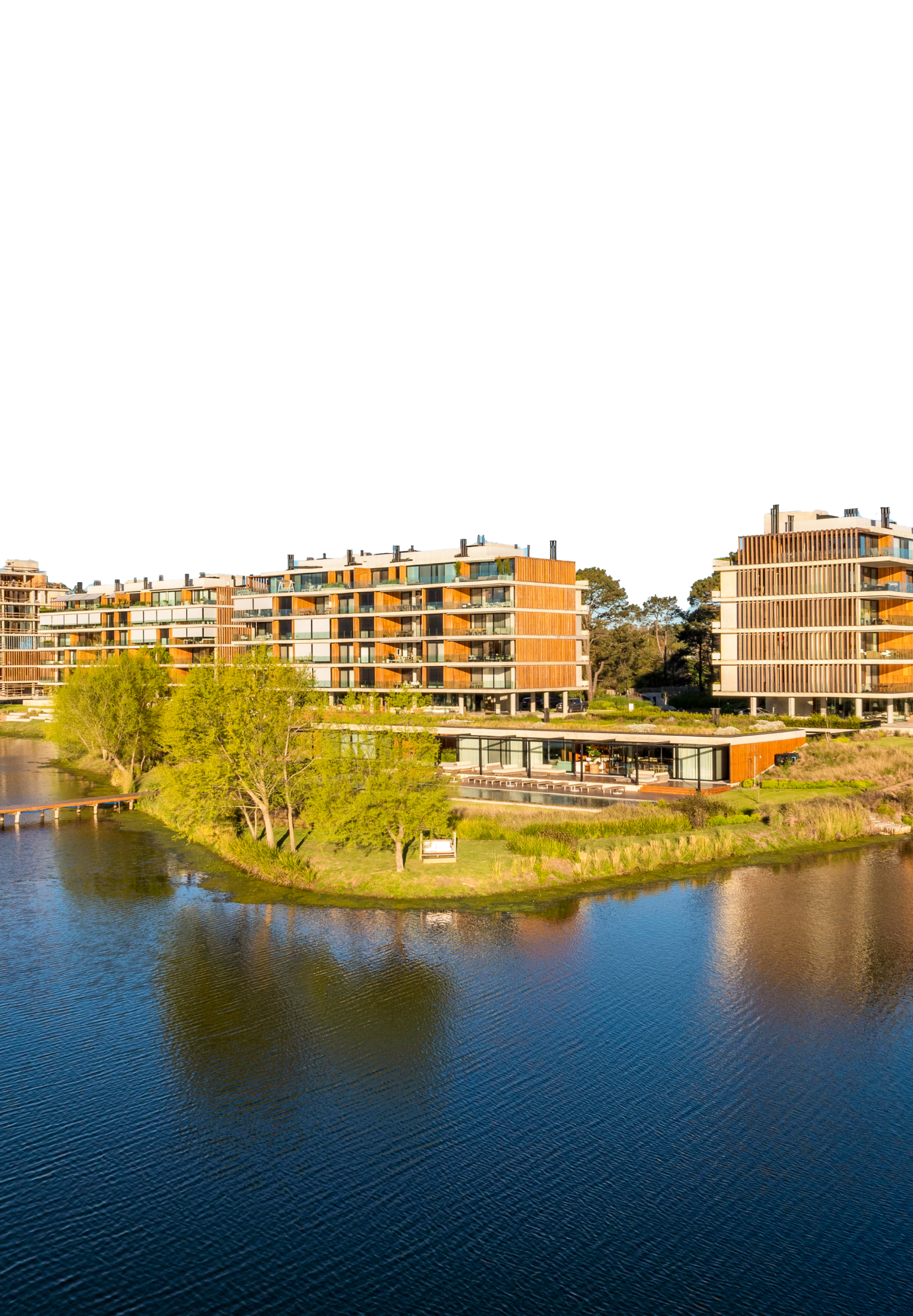 Diseñamos un Lake House que invita al disfrute en todo momento del día, con la idea de que fuera una extensión de los apartamentos.
